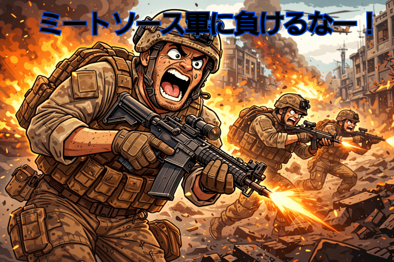 このミートソース派がお店に大量に流れ込み、店内を埋めつくし、ペッパークリーム以外のオムライスを注文し、ペッパー派の邪魔をするという、なんとも残忍な手段に出ました。